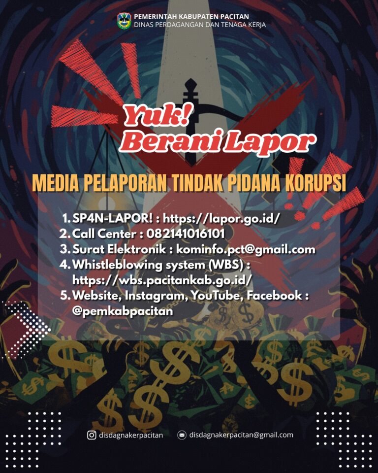 Menindaklanjuti Surat Komisi Pemberantasan Korupsi Republik Indonesia Nomor : B Tanggal 28 Februari 2025 perihal Peluncuran Indikator Indeks Pencegahan Korupsi Daerah (IPKD) MCP Tahun 2025.Mimin informasikan untuk sobat pacitan semua, jika menemukan indikasi tindak pidana korupsi dimana saja bisa melaporkan…